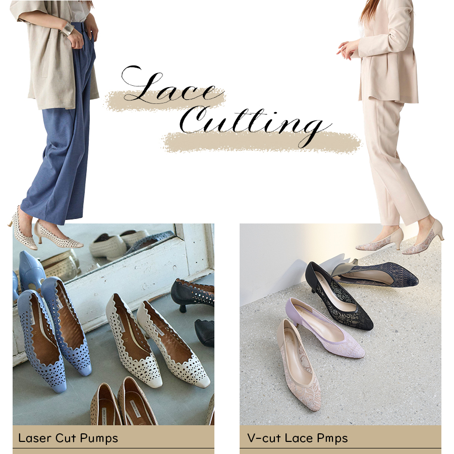 レースやカッティングはラグジュアリーな印象で履くだけでスタイリングが華やぐ一足です。