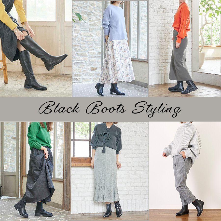 存在感があり、かっこいい印象を加えてくれる黒ブーツは、大人っぽく上品な装いに磨きをかけてくれます。